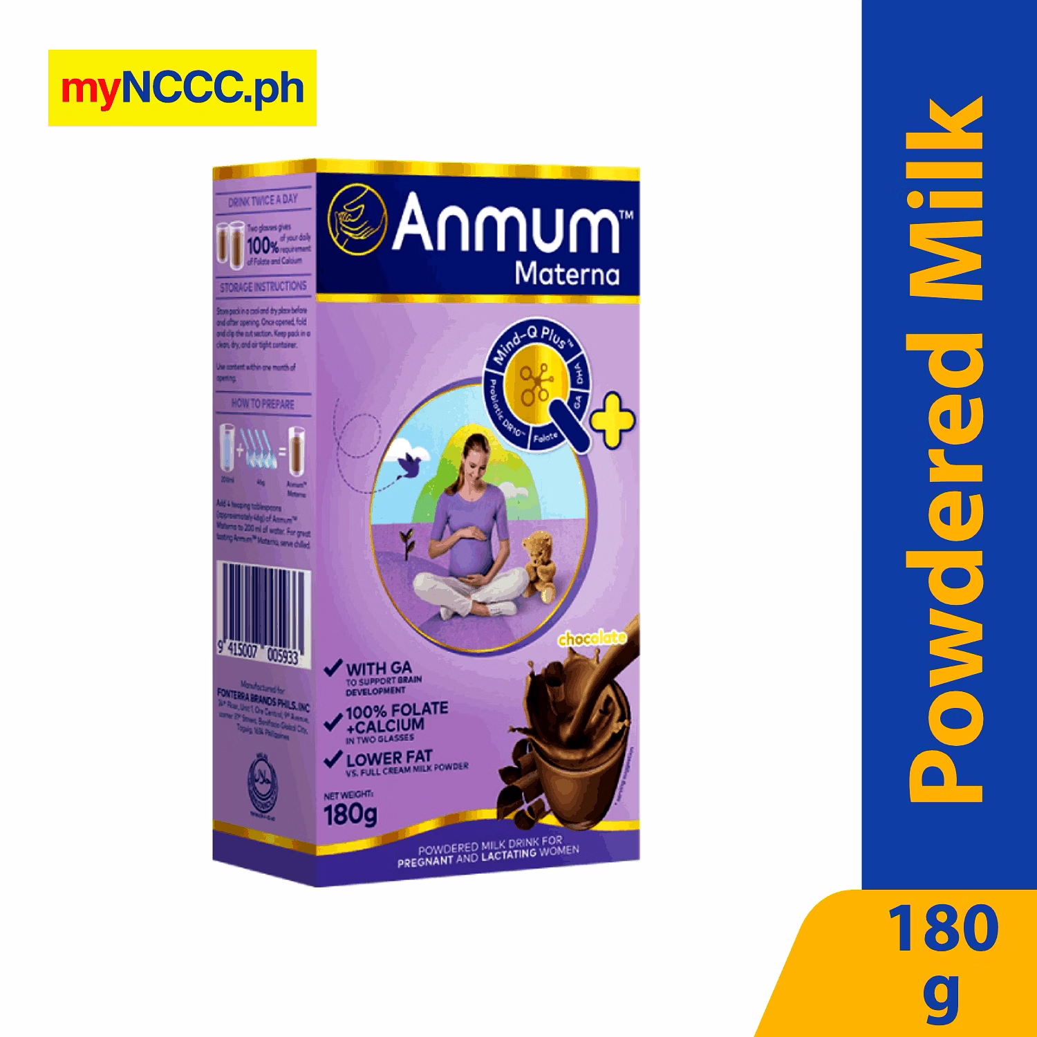 Anmum Materna Powdered Milk Drink Chocolate has vitamins and nutrients. Anmum Materna is specially formulated to provide you essential pregnancy nutrients at just 2 glasses a day. It has GA & DHA, Folate, Calcium, Iron and Probio DR10 & Inulin.