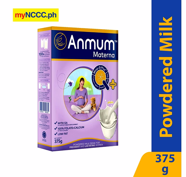 Anmum Materna Powdered Milk Drink has vitamins and nutrients. Anmum Materna is specially formulated to provide you essential pregnancy nutrients at just 2 glasses a day. It has GA & DHA, Folate, Calcium, Iron and Probio DR10 & Inulin.