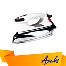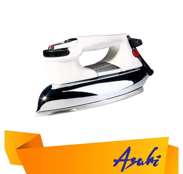 Polished aluminum sole plate. Heavy duty chrome finish cover shell. With heel rest, pilot lamp, button notch, thermal fuse and fabric guide.