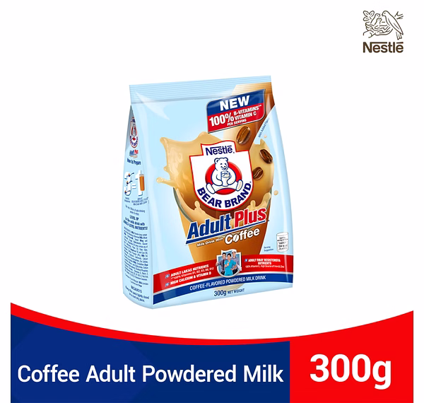 BEAR BRAND® ADULT PLUS is a high Calcium coffee flavored powdered milk drink specially formulated for adults 19-29 years old. It is fortified with adult level nutrients that help you stay productive at work.