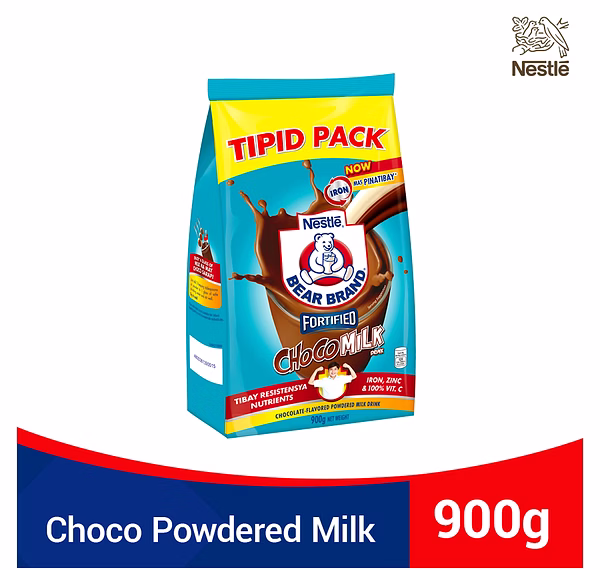 BEAR BRAND® Fortified Choco Milk Drink is a chocolate flavored powdered milk with Tibay Resistensya Nutrients equivalent to a glass of BEAR BRAND® FORTIFIED Powdered Milk Drink. It provides 100% Vitamin C (based on RENI, 4-6 years old) and high levels of Iron and Zinc in one glass.