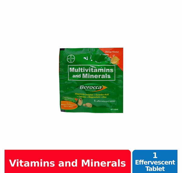 Berocca Effervescent Tablet in orange flavor, contains 12 vitamins and minerals ( vitamin B-complex, vitamin C, magnesium, and zinc) which make our product unique in the market. In as many as 11 clinical studies, Berocca has been proven to enhance mental and physical performance, increase concentration, decrease fatigue, and sustain your energy throughout the day.