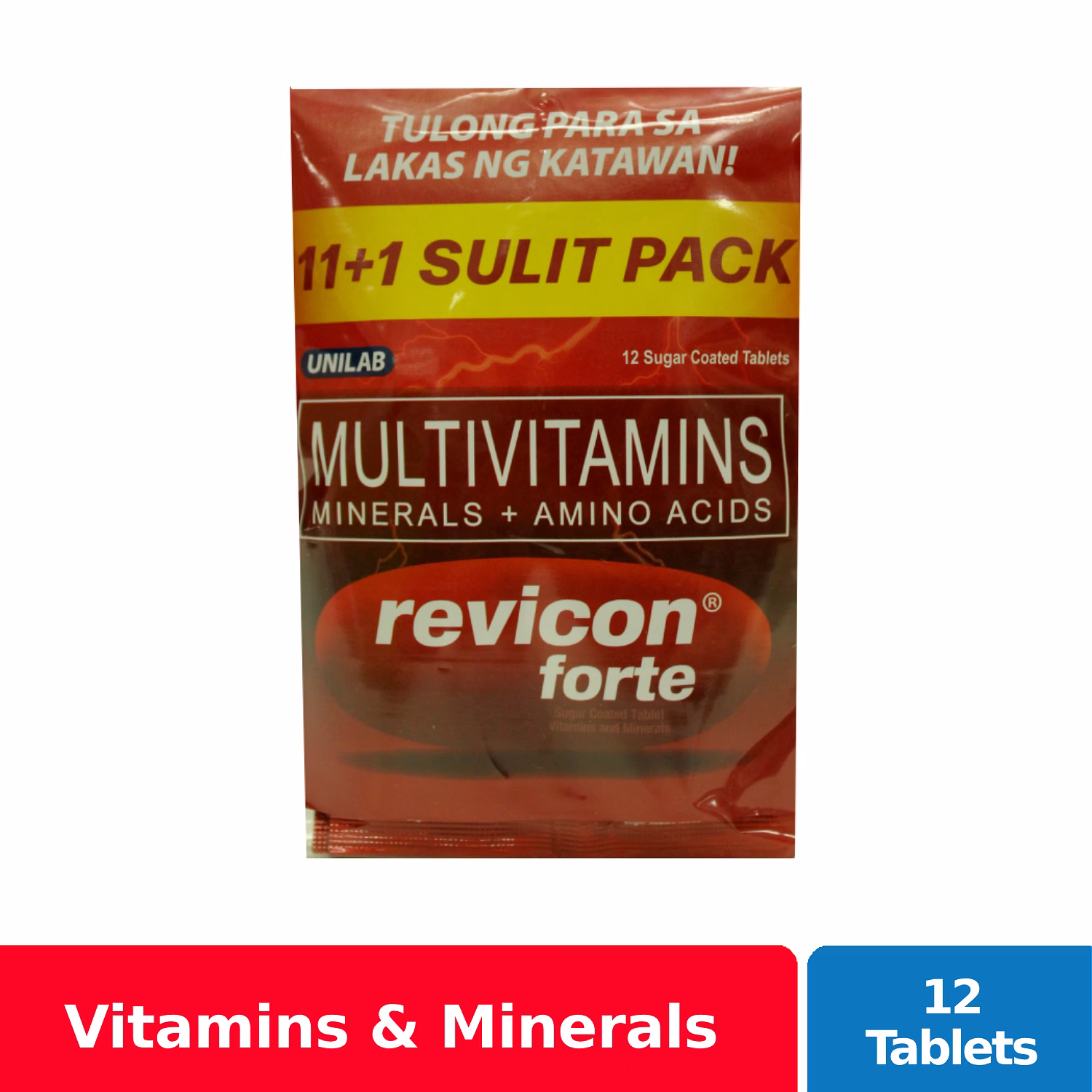 Revicon Forte Tablet is a yellow-orange, elliptical-shaped, sugar-coated tablet. This is a nutritional supplement to provide essential vitamins, minerals and amino acids for general good health, to help promote physical vigor and help improve stamina during physical activity.