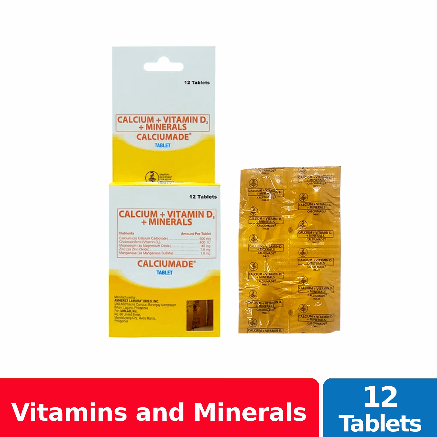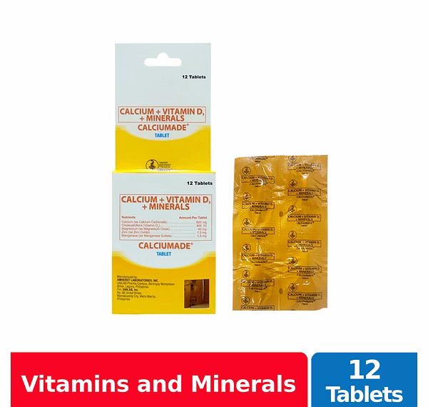 Calciumade Tablet is an orange, biconvex, elliptical-shaped coated tablet with product name on one side and plain on the other side. This medicine helps maintain optimum bone function and reduce the risk of osteoporosis later in life.