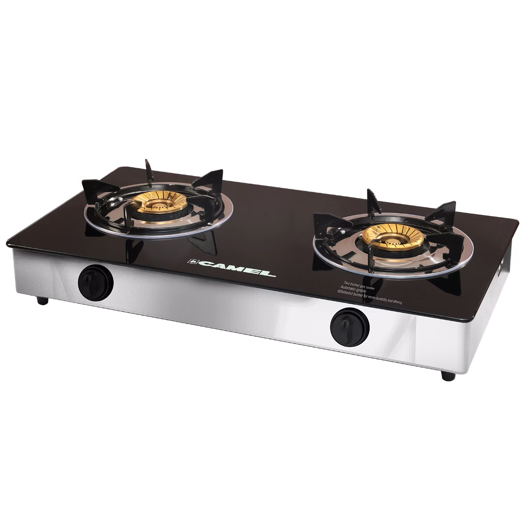 Tempered Glass Top, Body: Enamel Support, Double Burner