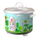 1.5 liters/ 8 cups, with glass lid and aluminum inner bowl. Fully insulated handles and legs.