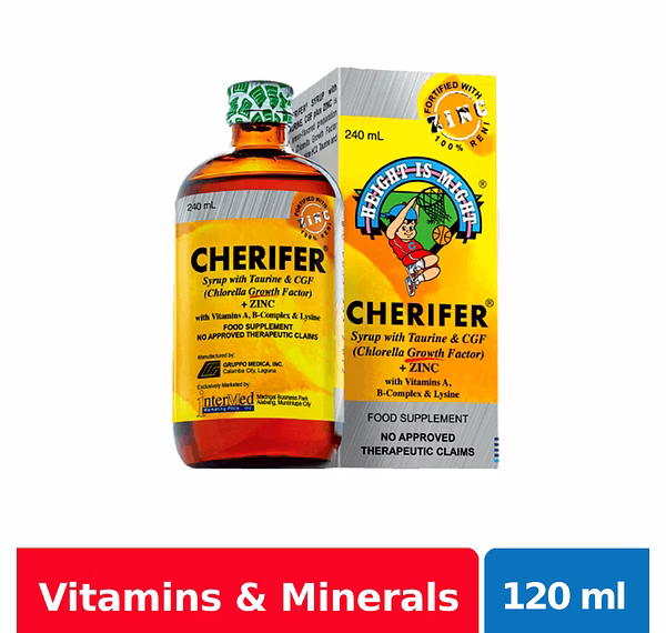 Cherifer Syrup with Zinc maximizes children’s growth potential through Chlorella Growth Factor while building up a stronger immune system for them with the help of Zinc. It also has Taurine for developing better visual and motor skills, and sufficient amounts of B-complex vitamins that help in the absorption and utilization of proteins, fats and carbohydrates in a child’s diet.