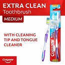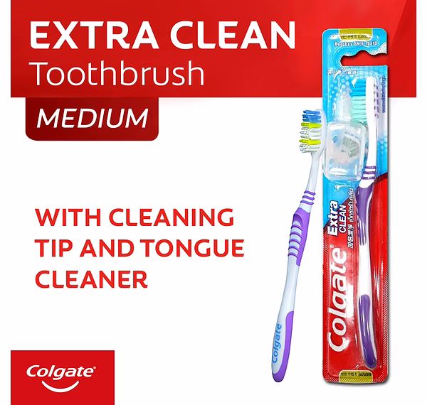 Medium Brush with multi-level bristles with dual cleaning tips to clean hard to reach areas. Now with a soft tongue cleaner to remove odor causing bacteria.