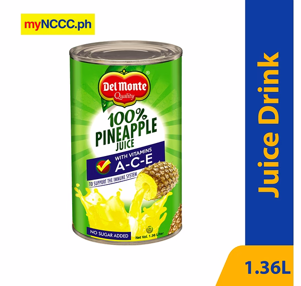 Del Monte Juice Drink 100% Pineapple Juice with Vitamins A-C-E Unsweetened 1.36L