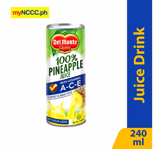 Del Monte Juice Drink 100% Pineapple Juice with Vitamins A-C-E Unsweetened 240ml