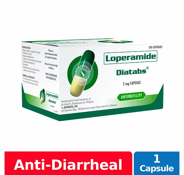 Diatabs Capsule has a dark green opaque cap and ivory opaque body. This medicine is used to control and asymptomatic relief of acute non-specific diarrhea, chronic diarrhea associated with inflammatory bowel disease, and reduction of number of volume of discharge in patients with ileostomies and colostomies.