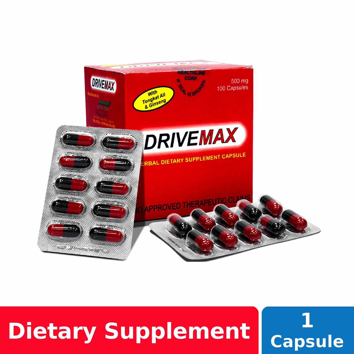 Drivemax capsule is a herbal dietary supplement capsule for sex enhancement. It contains tongkat which increases sex drive and increases testosterone level, gingko biloba which reduces mental fatigue, and gingseng which gives additional strength, endurance, stamina, and energy.