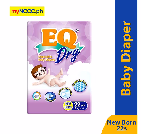 EQ Dry has bubble top sheet protection, 100% breathable softer cottony cover, side leak guards and high-absorbent core with adequate distribution layer.