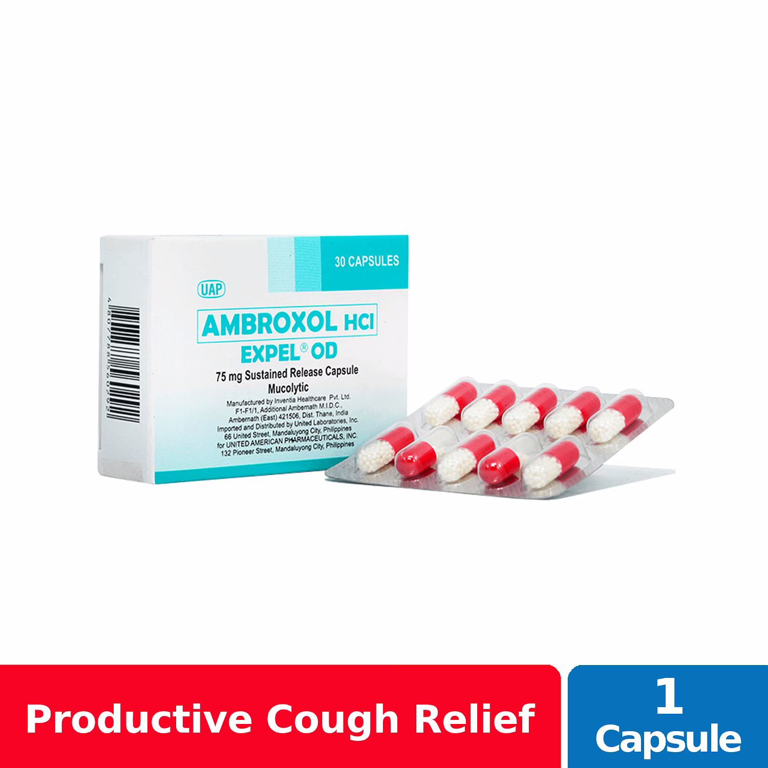 Expel OD Capsule is a sustained-release capsule comes in a hard gelatin capsule with scarlet red opaque capsule and clear transparent body. It is used for the relief of cough secondary to acute and chronic diseases of the respiratory tract accompanied by excessive lung secretions such as chronic bronchitis, asthmatic bronchitis and bronchial asthma.