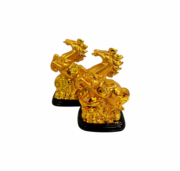 *This gorgeous horse is standing on a bed of coins accompanied by a pot of wealth to signify victory, abundance and speedy good fortune luck! With its high quality gold finishing, it makes an excellent for business owners and managers. *This beautiful golden rearing horse is a representation of nobility, aggression, victory and vitality. Because the Horses are an icon of authority, endurance and perseverance.