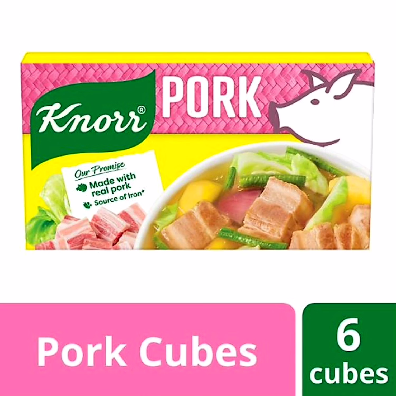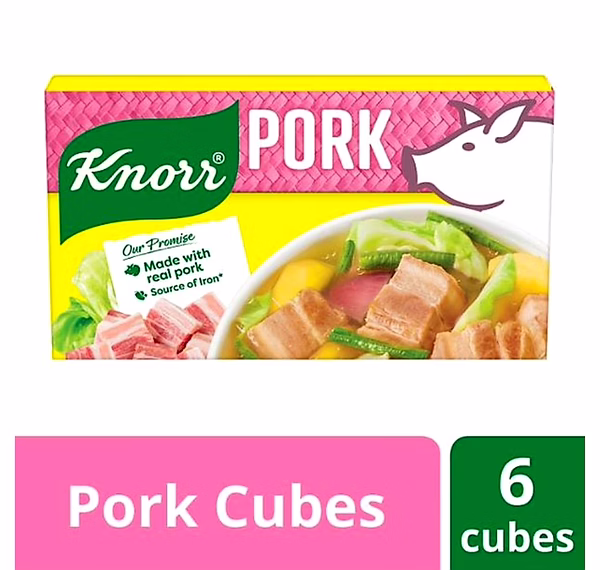 Knorr pork broth cubes gives the flavor of long-boiled pork in a cube. Best used for pork-based soupy and saucy dishes.