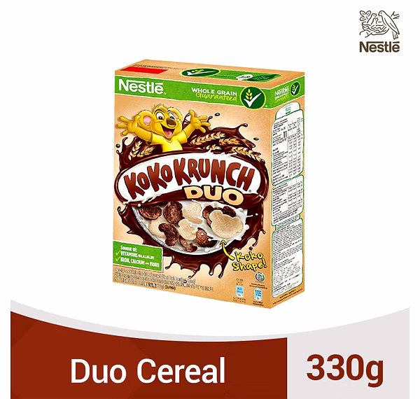 NESTLÉ KOKO KRUNCH DUO is a great combination of delicious white chocolate and delicious chocolatey NESTLÉ KOKO KRUNCH. It is wholegrain guaranteed, 7 Vitamins & Minerals and a good source of fibre.