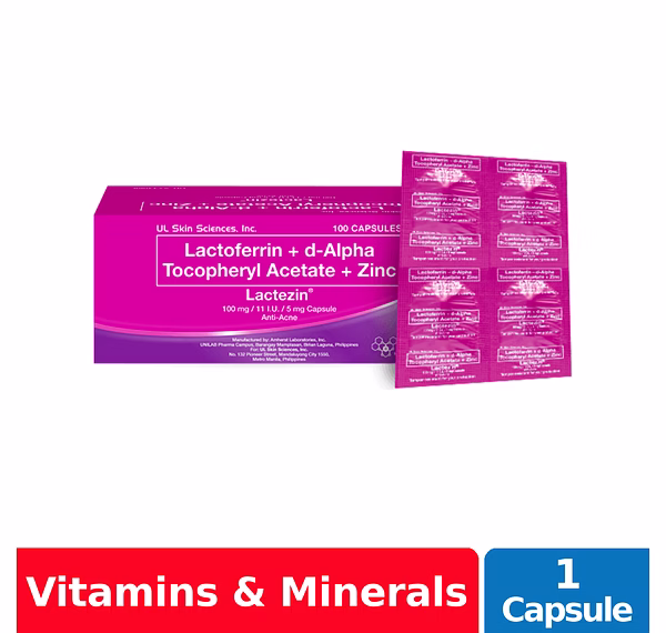 Lactezin is a clinically-tested over-the-counter drug, which uses a natural antibacterial active ingredient Lactoferrin combined with Vitamin E and Zinc to help lessen pimples and give clear skin in as early as 2 weeks.