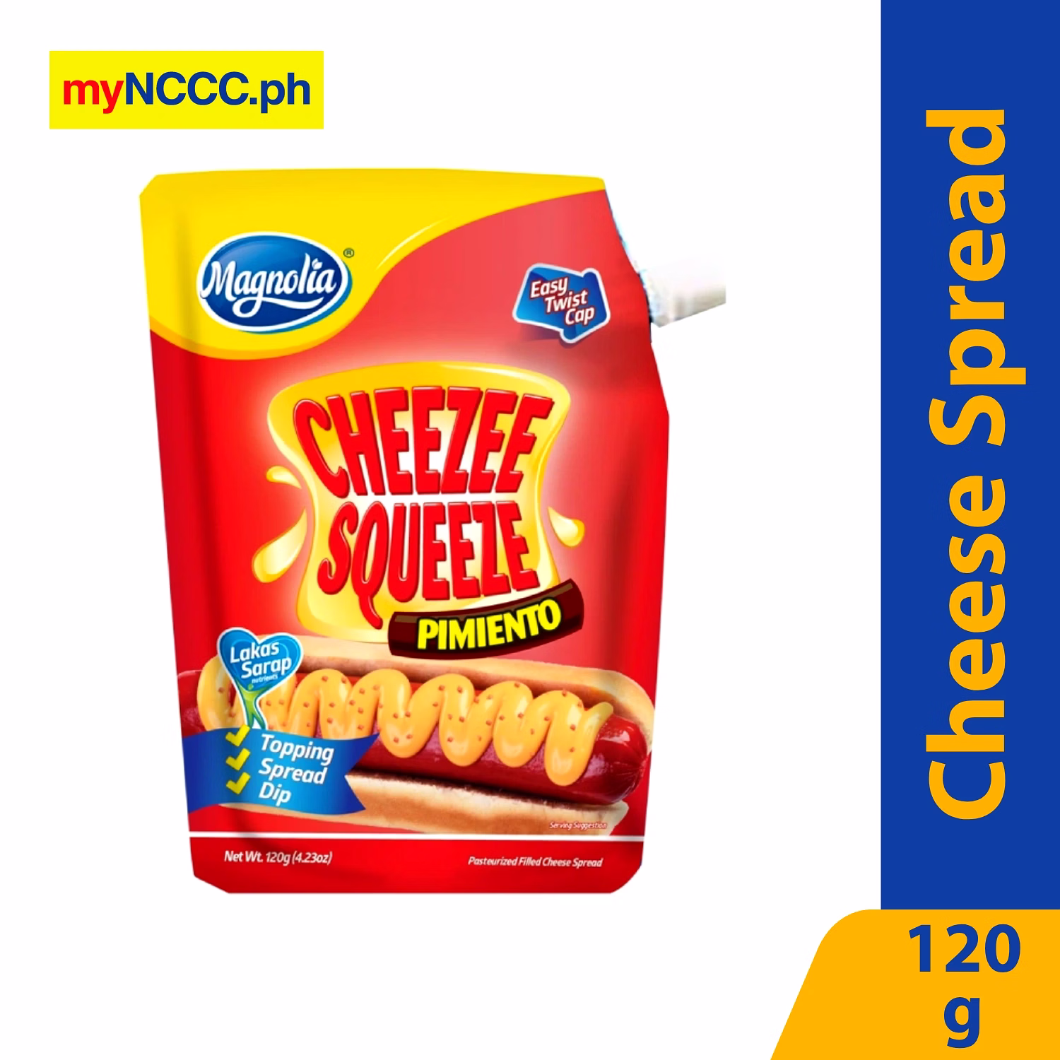 Pasteurized processed filled cheese spread made from high-grade cheddar cheese, pimiento and milk solids. It has vitamins A, B1, B2, D, Milk proteins and Zinc calcium that help kids grow healthy and strong.