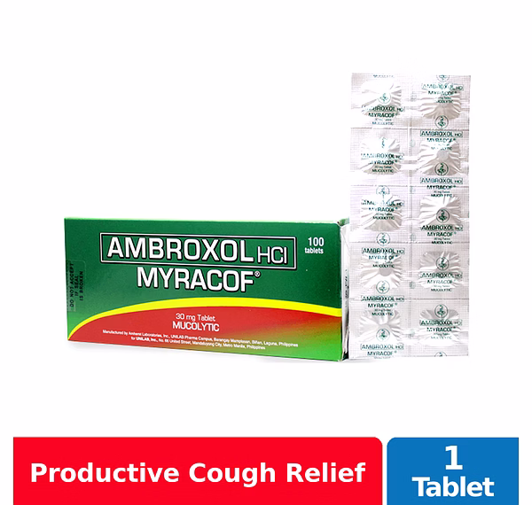 Myracof Tablet is a white, round, flat, bevel-edged tablet, bisected on one side and plain on the other side. This medicine is used for the relief of cough secondary to acute and chronic diseases of the respiratory tract accompanied by excessive lung secretions such as chronic bronchitis, asthmatic bronchitis and bronchial asthma.
