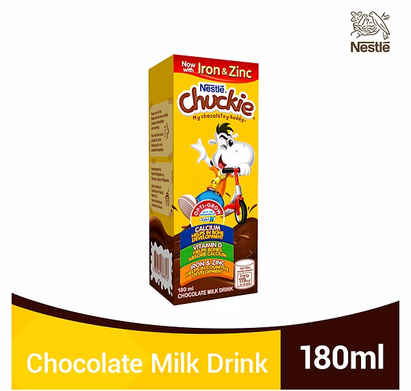 Nestle Chuckie, my chocolatey buddy, is the coolest, most fun to drink beverage brand among Filipino kids today. It is a sterilized recombined and homogenized high grade chocolate flavored milk fortified with CALCI-N, for stronger bones.