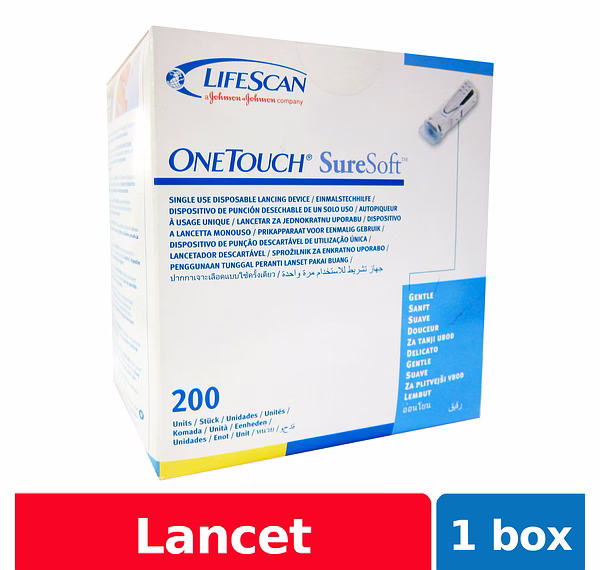 OneTouch SureSoft Lancets are needles that produce more blood than acid-washed devices, allowing smaller gauge needles to be used with less penetration. It has distinctive wing design prevents reloading and reusing. It also has comfort grips which are easy to hold and use. It has preset gauge for no guessing, no maneuvering, and easy training