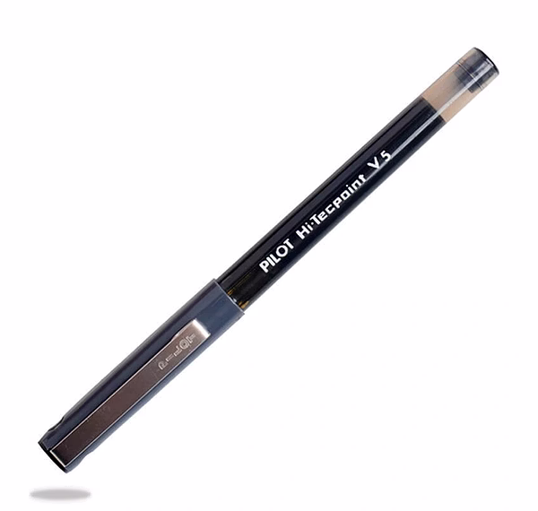 The Hi-Tecpoint V5 needle-point liquid ink pen is the much loved classic roller ball pen. The pen has a convenient clear barrel and a sturdy metal clip.