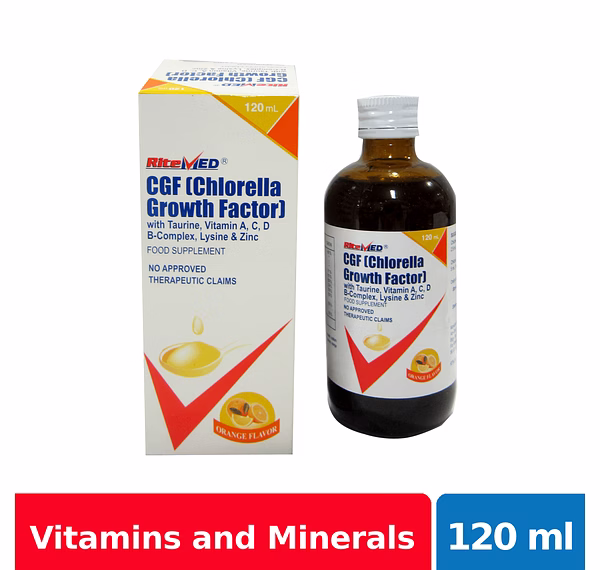 RiteMed Multivitamins + CGF Syrup is an orange-flavored syrup which promotes rapid growth for children and increases energy levels.