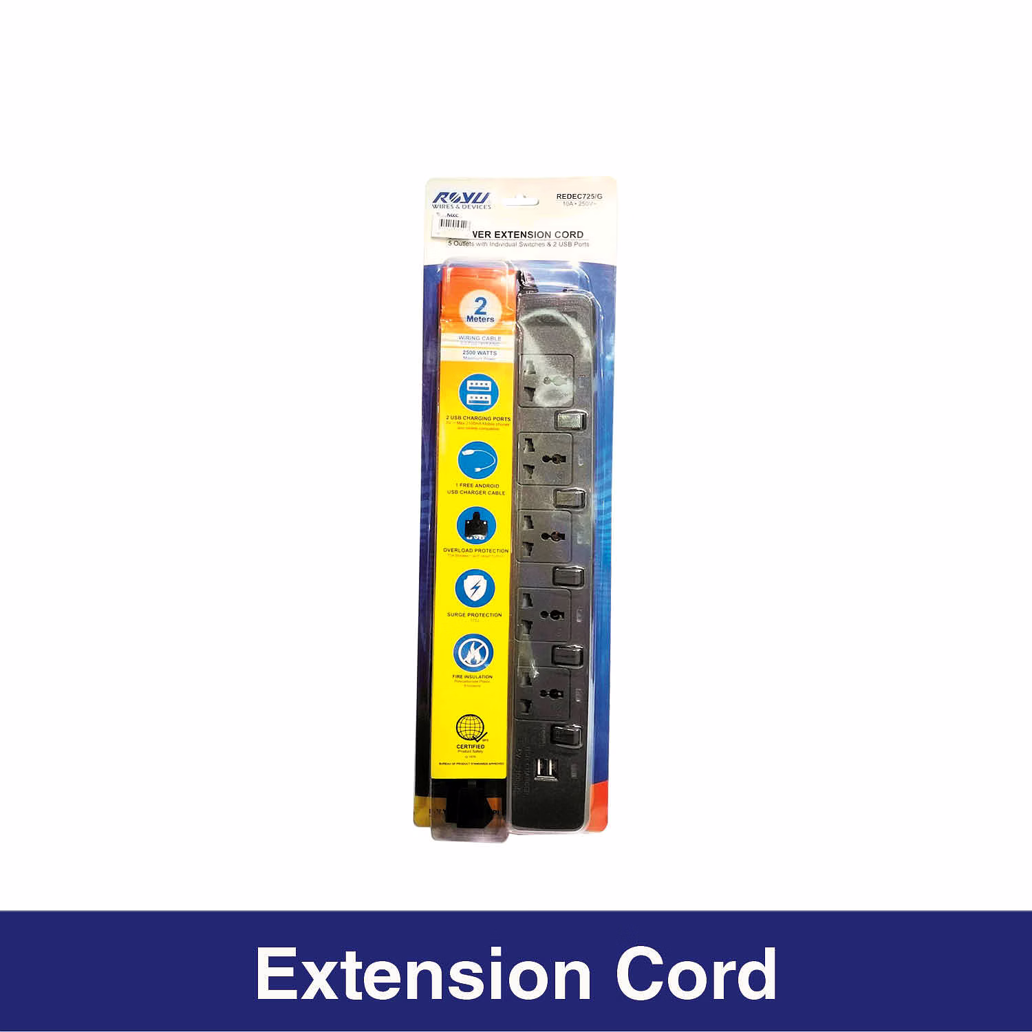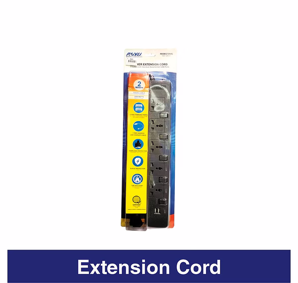 Royu 5Gang Power Extension Cord with Individual Switches & 2 USB Port
