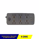 Royu 6Gang Extension Cord with 1 Main Switch & 2 USB Port Power Strip Gray
