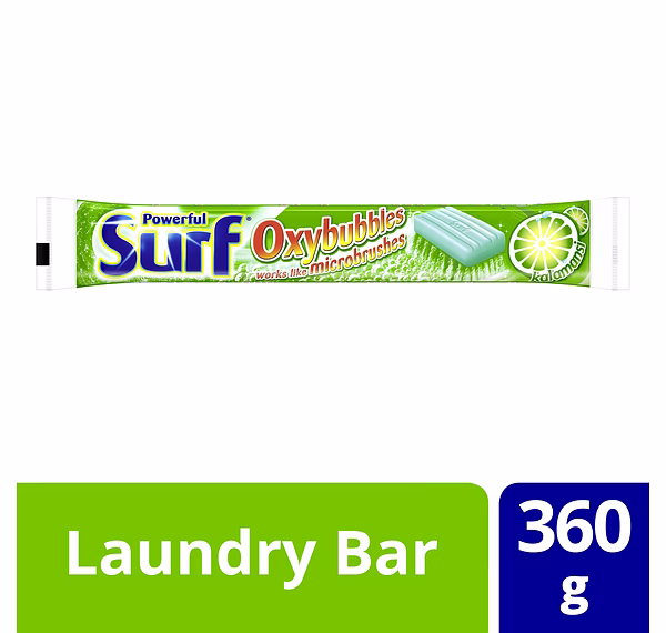 Surf Kalamansi detergent bar with Oxybubbles that works like microbushes to give unique and fragrant laundry experience.