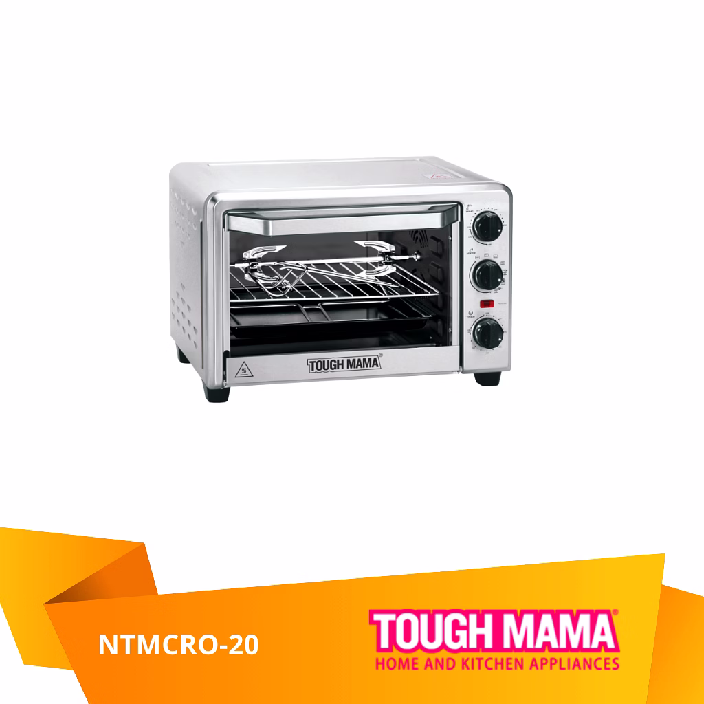 • Full INOX stainless steel body • Rotisserie function easy chicken grill • Convection function for even baking • 7 stages heating and function select switch • Cool touch plastic & stainless steel handle • 60-minute timer with bell ring • 100-250°C thermostat control