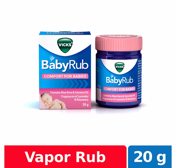 Vicks BabyRub is specially developed for your baby in association with baby and skin experts. Made with fragrances of Rosemary, Lavender & Eucalyptus and extract of Aloe Vera and is dermatologist confirmed.