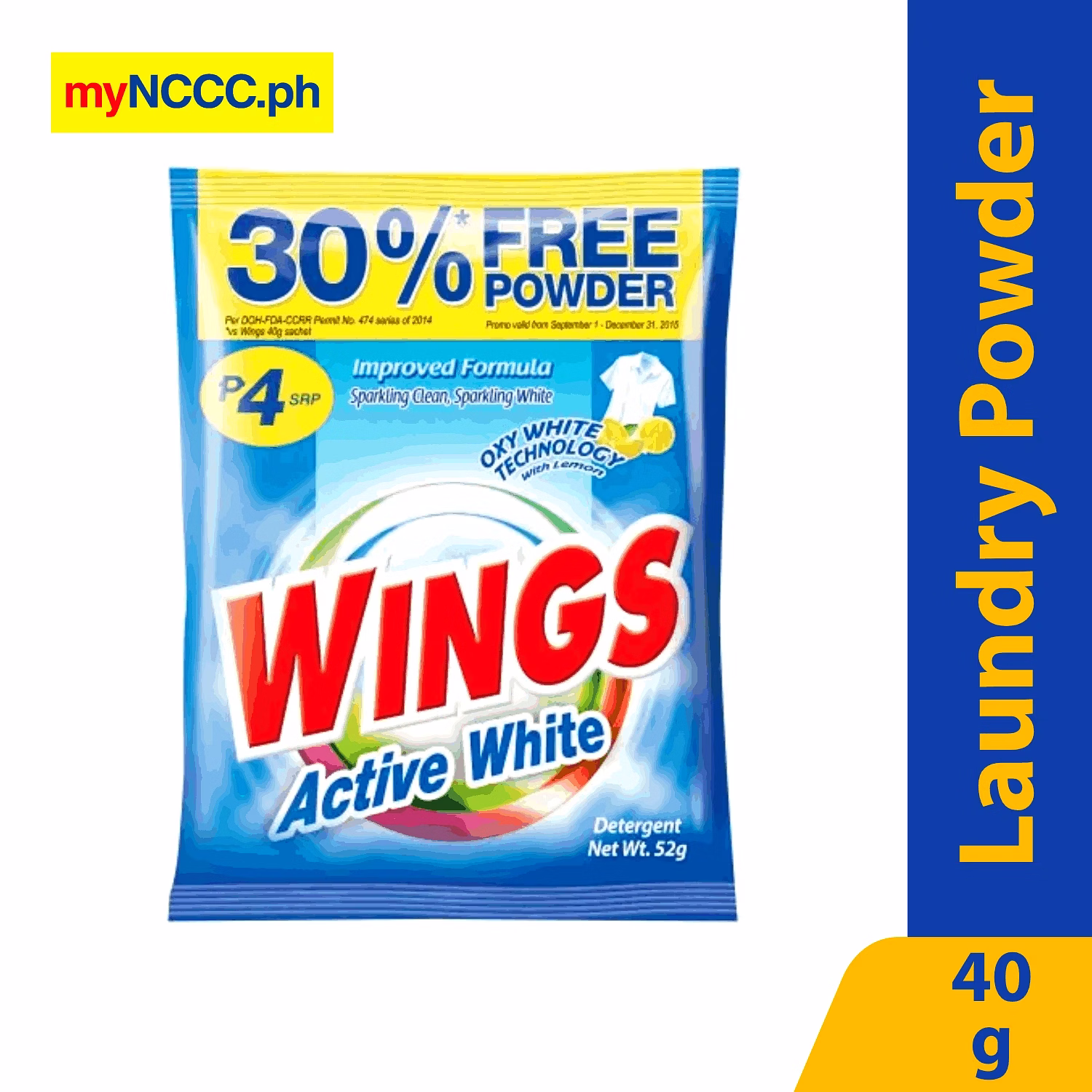 Wings Detergent Powder White 40g+30% More